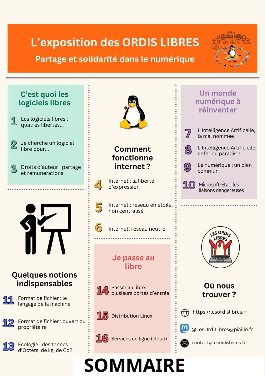Dans ce cadre, l'association Les Ordis Libres aura un stand avec son exposition «Partage et solidarité dans le numérique» et animera un atelier de démonstration de Linux: montrer une installation et les principaux usages, à partir de XUbuntu. L'idée est de prendre date pour une installe-partie pour les personnes intéressées.
